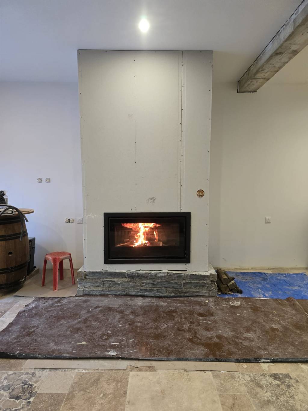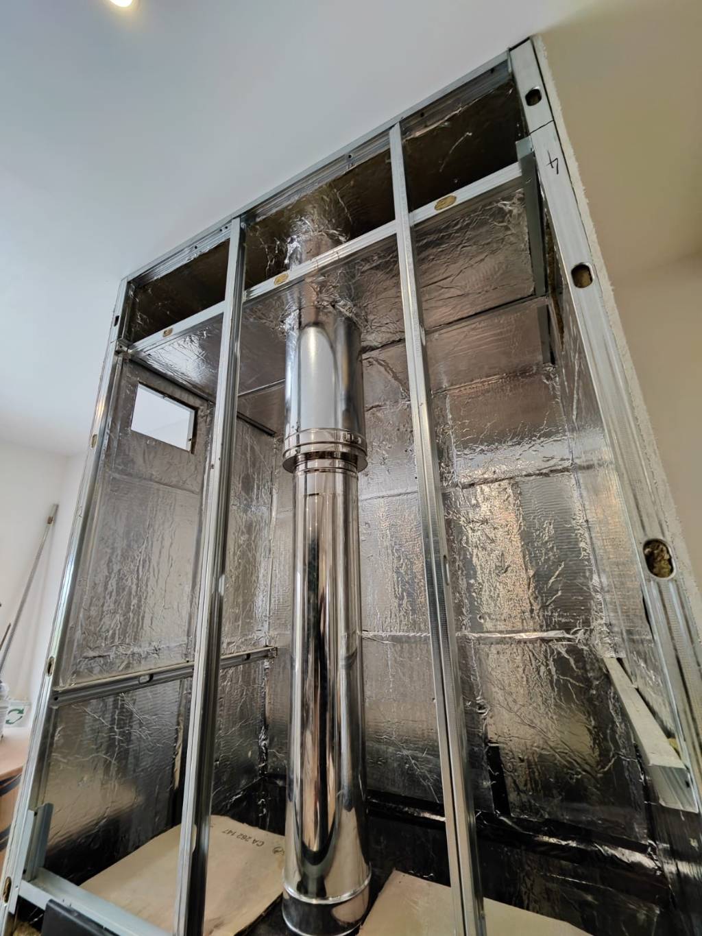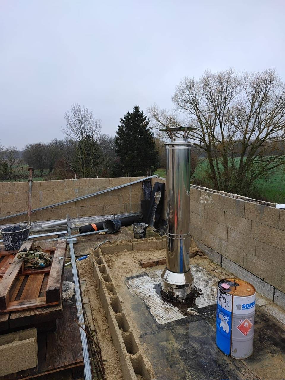 Nous avons réalisé le conduit d'évacuation des fumées sur toit terrasse ainsi que l'habillage du foyer aux normes en vigueur.