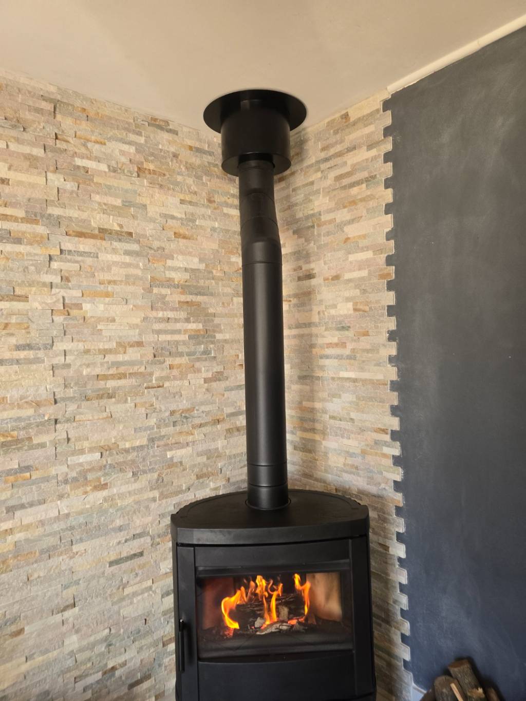 Accueil / Nos réalisations / Installation d'un poêle a bois bûches (installa...